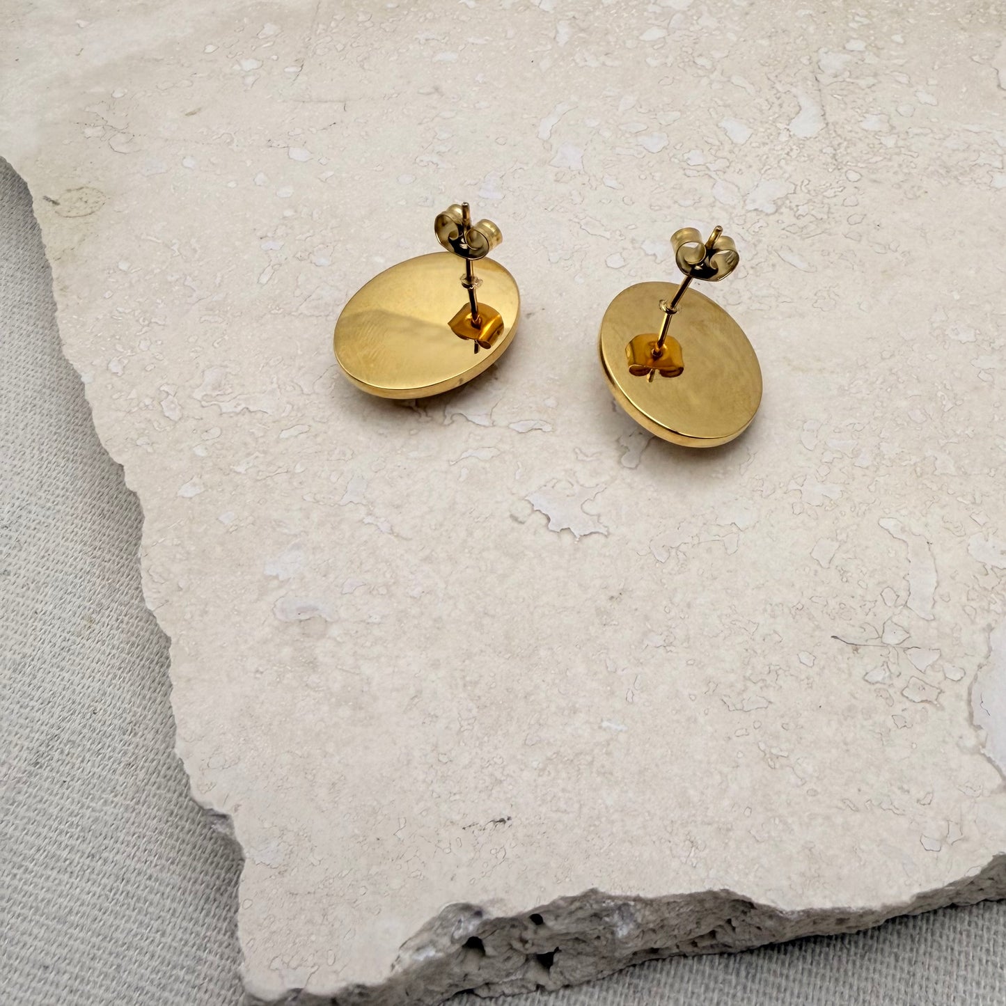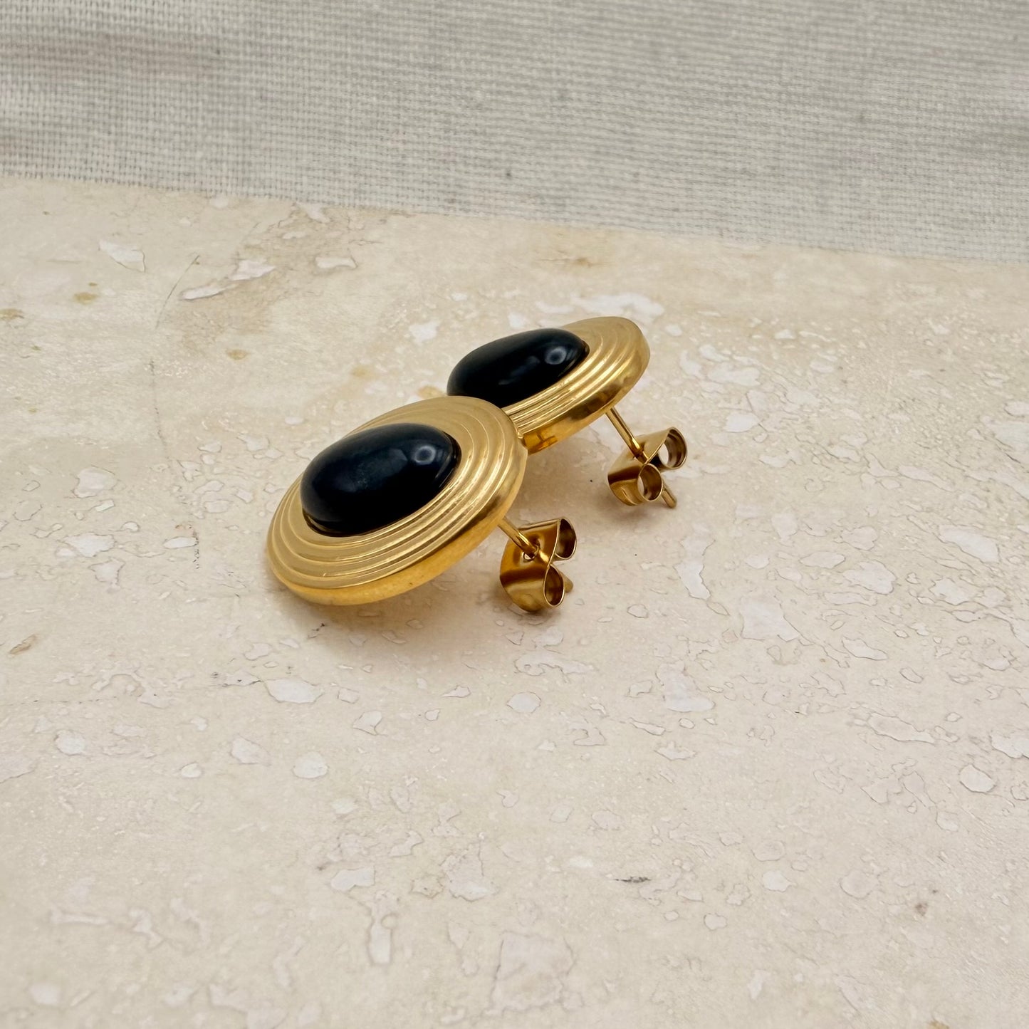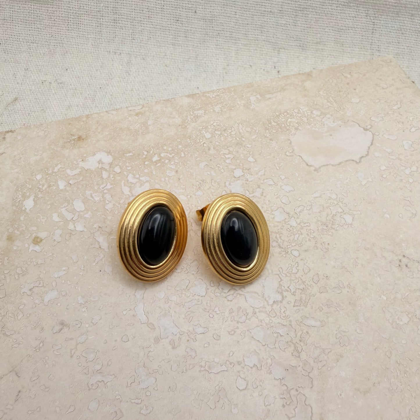 Inspired by our own vintage jewels, our Everyday Noir Oval Studs make such a glamorous addition to your jewellery box. Stunning deep noir cabochon stone finished in our Everyday Gold setting, finished with a post fitting and butterfly back.