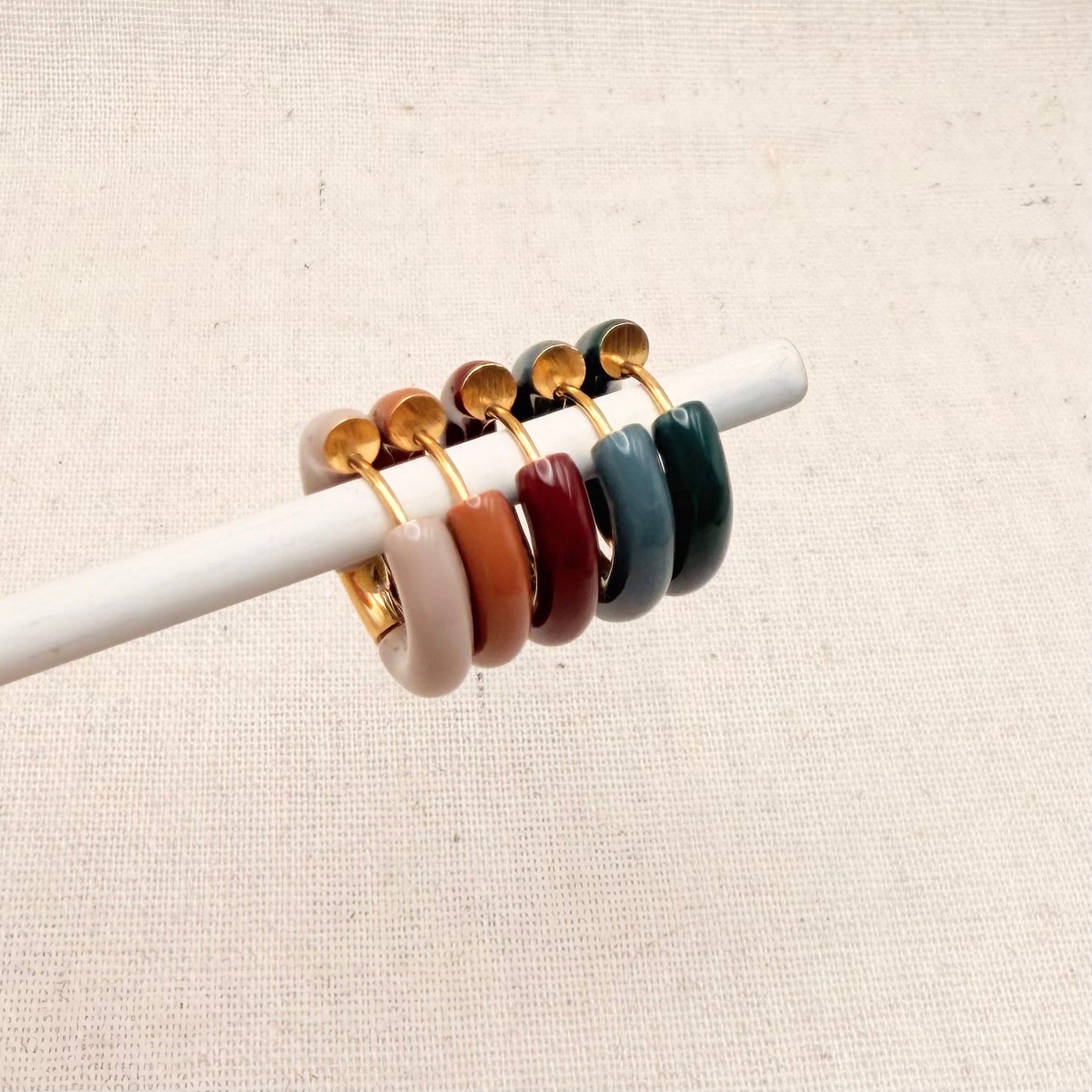 Add a luxurious dash of colour to your ear stack. A thick gold hoop deliciously dipped in sumptuous autumnal tones, these hoop earrings are perfect for adding a little warmth to your jewellery box.
