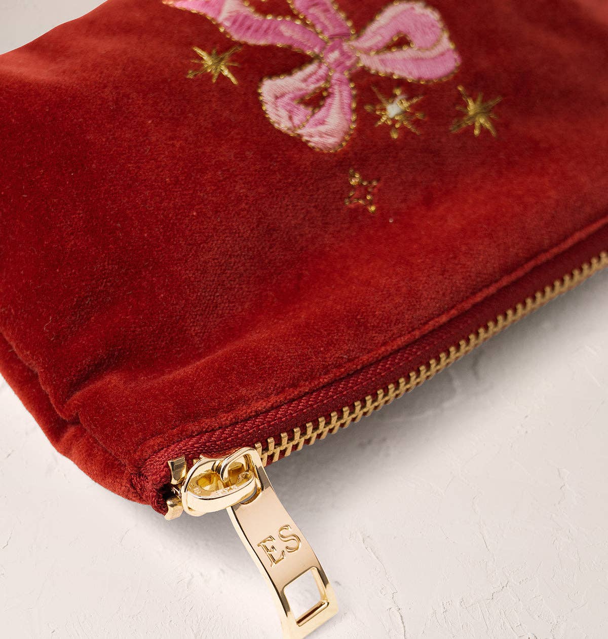 No need for wrapping: this sweet design comes already tied with an embroidered bow. Adorned with golden stars and pink threads against burgundy velvet, perfect as a present to your loved ones - or as a treat to yourself. This coin purse is perfectly sized to fit in your handbag, promising to keep all of your travel-sized essentials safe and sound when on the go.