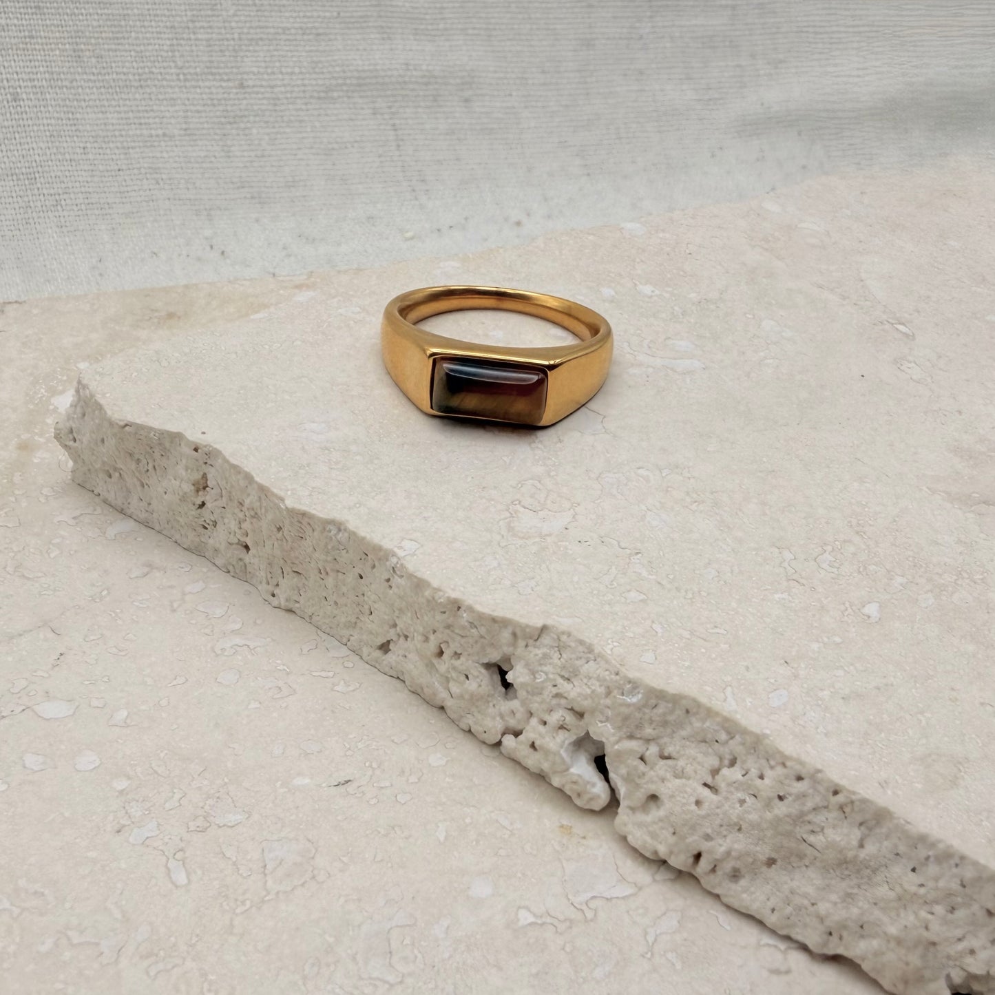 Meet our Everyday Tiger's Eye Oblong Ring, an iridescent stone in an east-west setting. A little bit of luxury that can be stacked up or worn solo.
