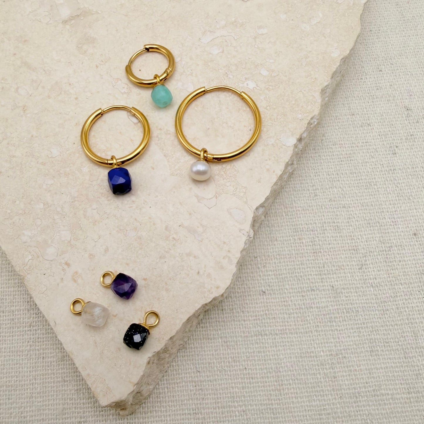 Add some sparkle to your stack with our gorgeous faceted stone charms. Part of our Everyday collection, these sweet charms can be added to our Everyday Hoops or Charm Necklaces.