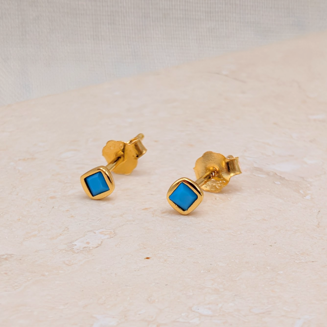 Vibrant gold turquoise studs that are perfect for adding a subtle splash of colour to your ear stack.